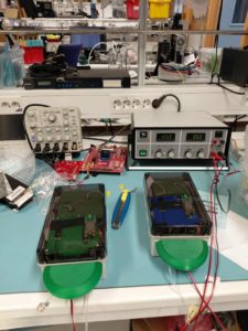 A drone with equipment on top of its container outdoors